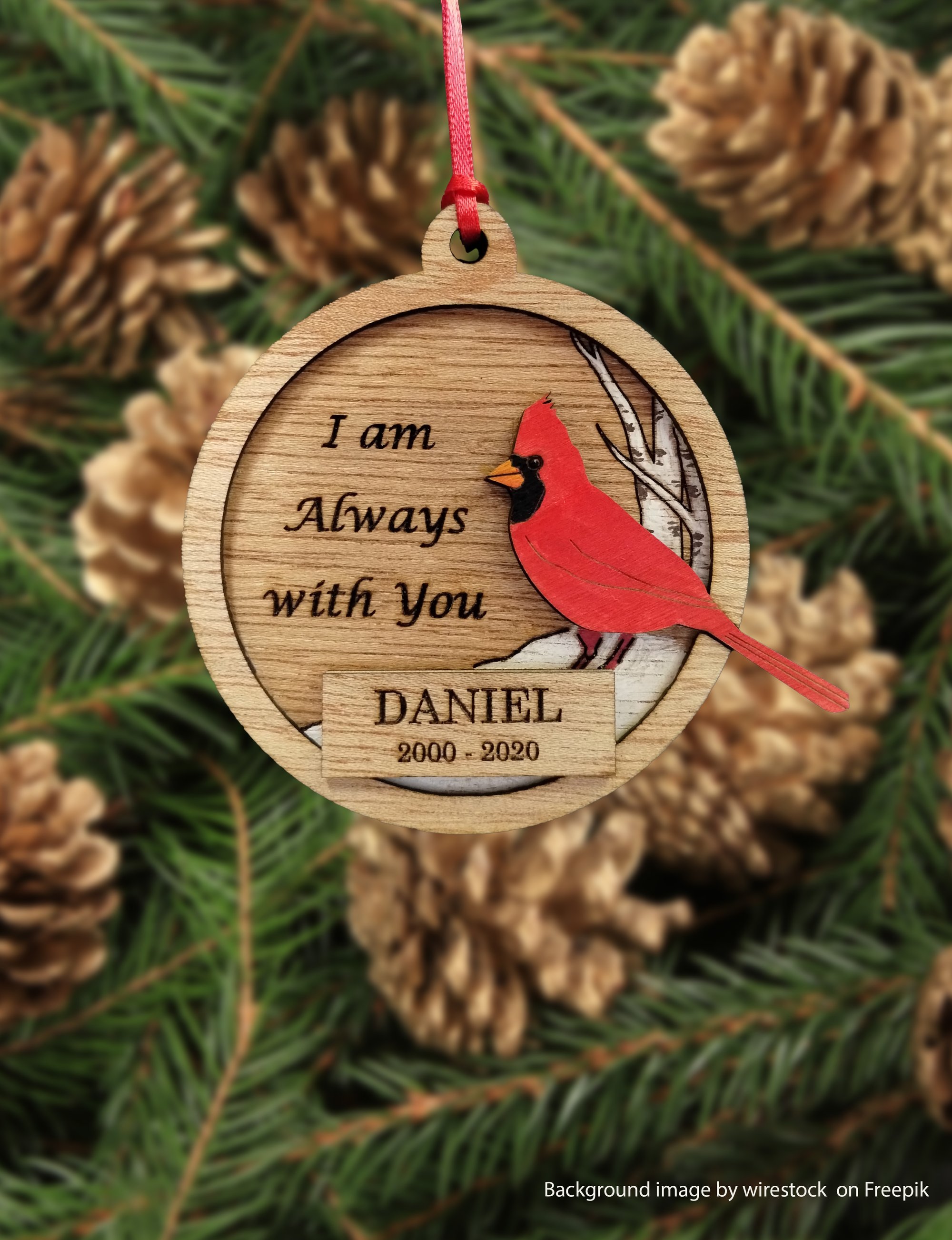 Cardinal Memorial Ornament Wood - I Am Always with You