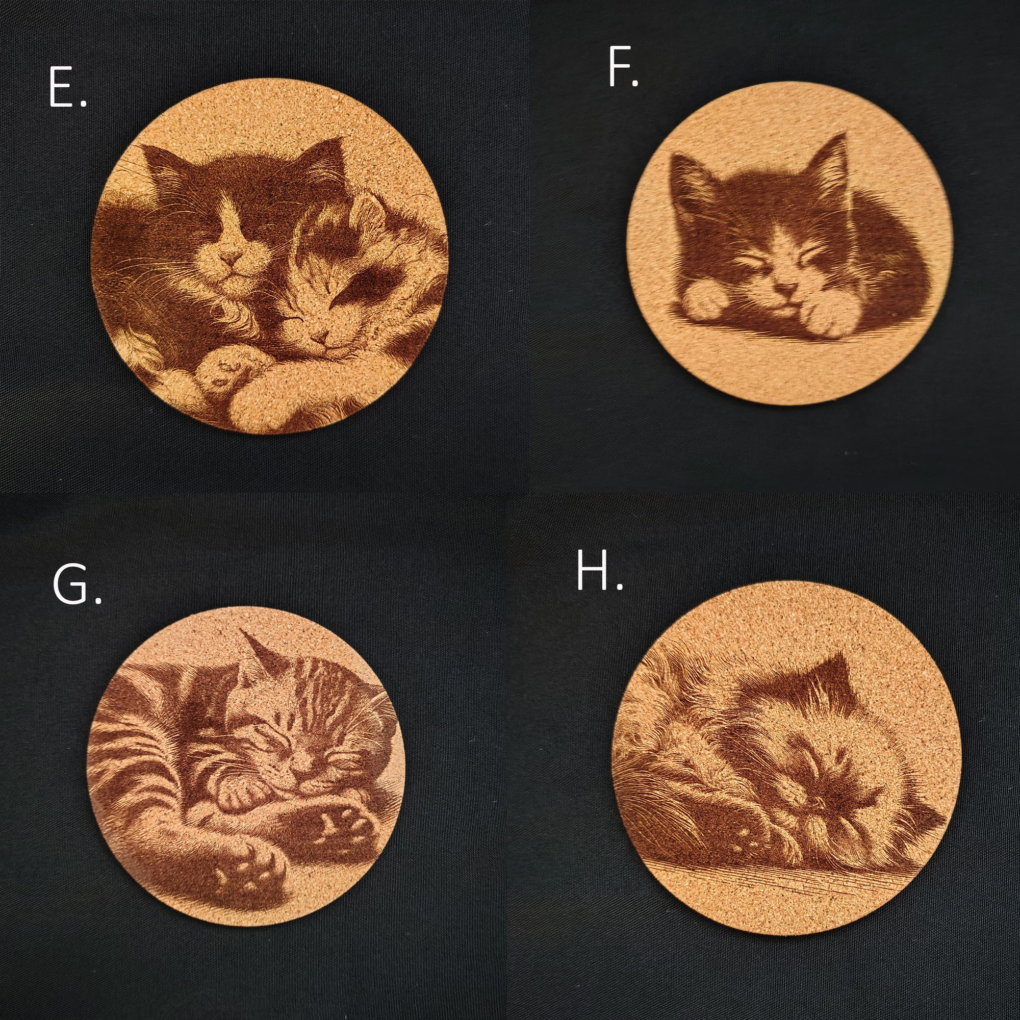 Why not grab a few of these adorable laser-engraved sleeping kitten coasters?